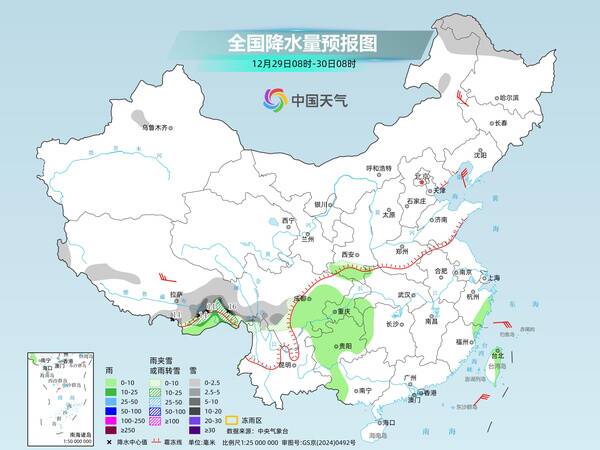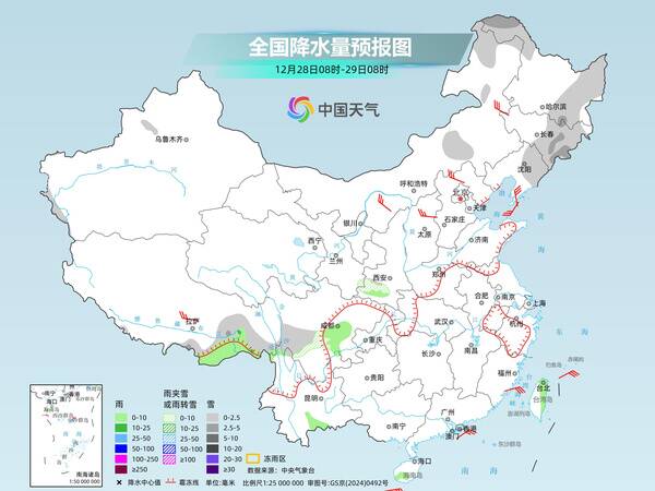 具體來看,中央氣象臺預(yù)計(jì),今天(12月28日),內(nèi)蒙古中東部、東北地區(qū)北部和東部、陜西南部、西藏東南部、川西高原等地部分地區(qū)有小雪或雨夾雪,其中,黑龍江西北部和東南部、吉林東部等地部分地區(qū)有中雪。四川盆地中東部、云南東南部、海南島西南部、臺灣島東部等地部分地區(qū)有小雨。